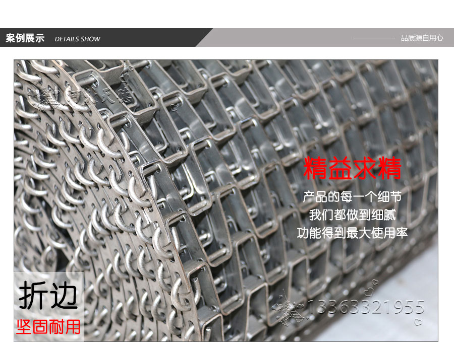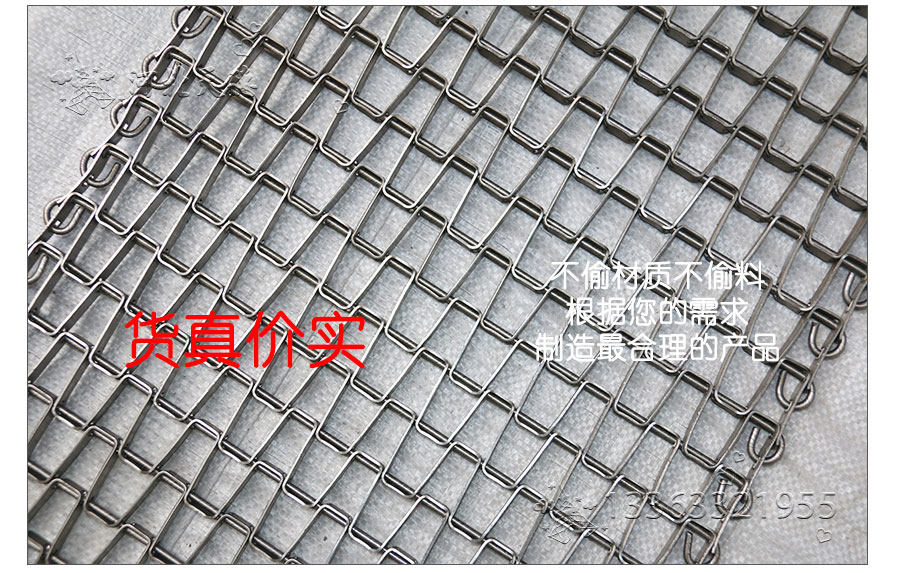 長城網帶材質:有A3低碳鋼、45#鋼、1Cr13耐熱鋼、 不銹鋼、304不銹鋼、1Cr18Ni9Ti不銹鋼、0Cr18Ni14NO2CU2耐熱耐酸鋼等